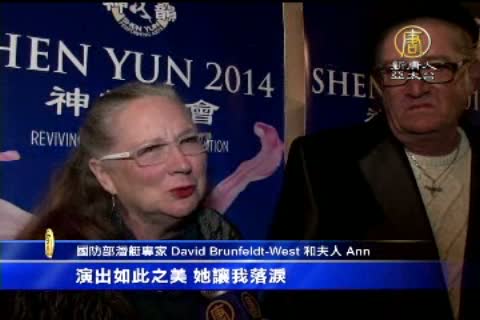 【新唐人亞太台2014年3月20日訊】美國國防部的潛艇專家大衛‧布倫菲維和妻子,18號晚間一起前往觀看神韻巡迴藝術團在喬治亞州奧古斯塔市的首場演出,被神韻深深震撼、熱淚盈眶,讚歎神韻表達的慈悲和愛。