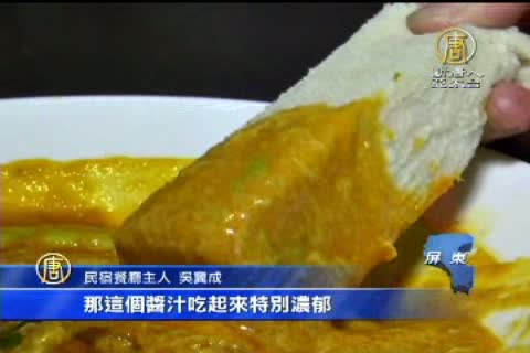 民宿餐廳主人 吳冀成:「泰式咖哩蝦這特別的地方,就是它還會附一個麵包,讓你們去沾這個特別的醬汁,那這個醬汁吃起來特別濃郁;另外一道雲南椒麻雞,雞腿肉的話先去骨,去骨以後醃漬,那我們會先用炸,炸了以後會另外做一個很特別有酸酸甜甜味道的醬汁,會淋在上面。」