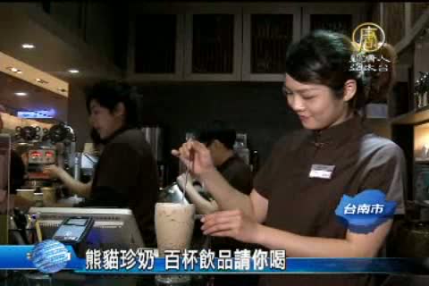 【新唐人亞太台2014年3月23日訊】貓熊圓仔熱潮持續不斷,有家知名連鎖茶飲業者,特別製作出熊貓珍奶,22號下午在全台灣的門市與店家推出百杯熊貓珍奶免費試喝,業者新推出的創意飲品,滋味如何呢? 帶你一同來品嚐 。