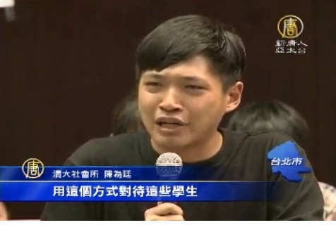 清大社會所 陳為廷:「所有這些嗜血的媒體,用鷹派鴿派的標籤,達到你們商業化的需求,所有這些嗜血的官員,用這個方式對待這些學生,不願面對訴求不願面對真相。」