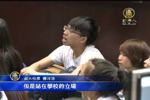 【新唐人亞太台2014年3月26日訊】反服貿抗爭持續延燒,學生自主串聯罷課潮也持續擴大,台大校長楊泮池今天出席活動不斷強調,支持學生關心社會,但台大學生說,希望校長可以進一步表態力挺學生、甚至支持學生的自主罷課。