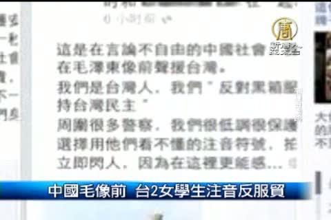 中國毛像前 台2女學生注音反服貿