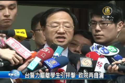 【新唐人亞太台2014年3月27日訊】這次學潮中的另一個焦點,行政院長江宜樺日前鐵腕驅離學生,今天700位台大學生與校友連署,要求江宜樺道歉下台,面對指控,行政院發言人今天表示,如果真的有發生警察暴力攻擊事件,他相信事情是遮不住的。而下午,就有受害學生出面控訴,警察踹人,用警棍打頭,絕對不是像江宜樺說的,拍拍肩膀而已。