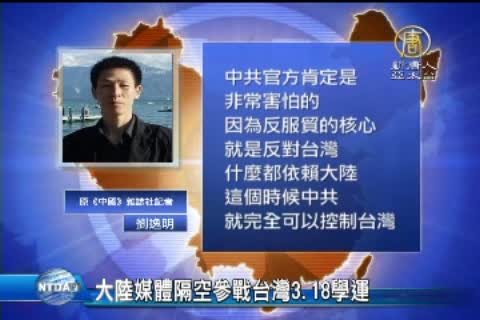 【新唐人亞太台2014年3月27日訊】台灣「反服貿學運」還在延燒,連日來,海峽對岸的中共官方媒體,也發表大量文章報導台灣學運,隔空參戰。近在咫尺的台灣學運,對北京當局來說,恐怕也無法掉以輕心。