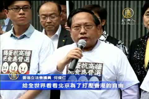 香港立法會議員何俊仁:「給全世界看看北京如何打壓香港的自由,打壓我們的民主訴求,寧願整個金融中心的心臟都要封了它,我們不怕的。」