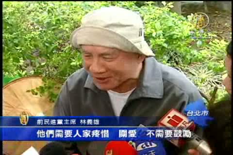 前民進黨主席 林義雄:「他們已經做得很好了,他們需要人家疼惜、關愛,不需要鼓勵,他們已經做得好,做得比我們大家做得都好,謝謝大家!(那政府不夠疼惜他們?)謝謝大家。」