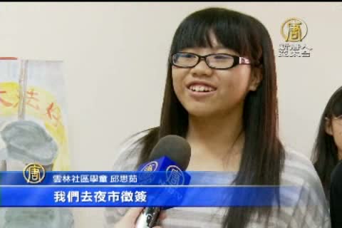 【新唐人亞太台2014年3月31日訊】全球制止中共活摘法輪功學員與良心犯器官,國際各種行動此起彼落,台灣雲林有8位國中小學生,組隊以漫畫徵簽和行動劇的方式,提醒社會正視中共活摘罪行,對此,主辦方特別頒發給他們「甘地人權獎」。