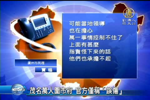 【新唐人亞太台2014年4月5日訊】廣東茂名萬上反PX事件,市政府週四首次召開記者會,會後,市政府外聚集的群眾不斷增加,到了晚上,現場多達兩萬人。市公安局副局長一度對外宣稱,鎮壓騷亂時警方只有「誤傷」圍觀民眾,否認打死人,民眾要求追究打人者責任。