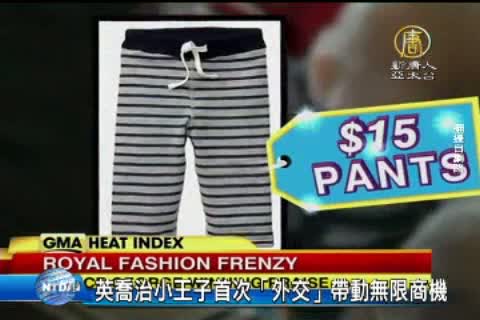 喬治小王子9日在紐西蘭與兒童玩耍身穿黑白相間條紋的褲子售價15美元,海軍藍連身褲售價100美元,這些都因經過喬治小王子的「加持」,而熱賣到缺貨。還有喬治小王子玩過的玩具,目前也在熱賣中。