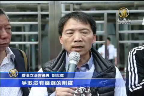 香港立法會議員胡志偉:「在此我們用我們的身軀來表達訴求,也向中共中央說我們為了爭取真普選,爭取沒有篩選的制度我們會全力以赴,不惜付出任何的代價。」