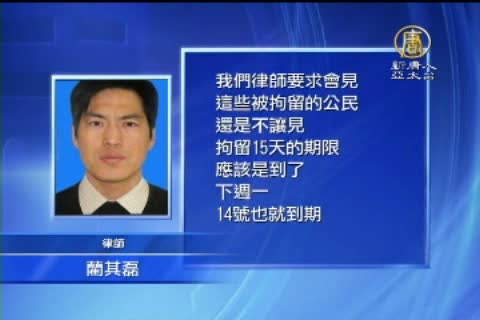 北京律師藺其磊:「我們律師要求會見這些被拘留的公民,還是不讓見,拘留15天的期限應該是到了,下週一,14號也就到期,應該就放了,聽說他們都被挨打,把這些公民營救出來以後就到黑龍江省檢查院去控告這些警察。」