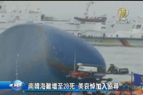 南韓海難增至28死 美哀悼加入協尋