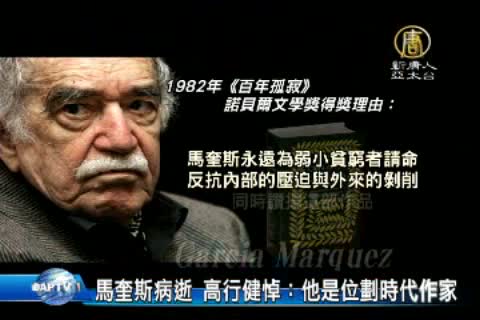 【新唐人亞太台2014年4月18日訊】1982年以《百年孤寂》一書獲諾貝爾文學獎的哥倫比亞作家馬奎斯,4月17號與世長辭,享壽87歲。包括哥倫比亞總統,墨西哥總統和多國政要,以及諾貝爾文學獎得主高行健,都向他表達哀悼之意。