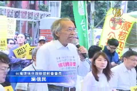 【新唐人亞太台2014年4月22日訊】台灣環境保護聯盟聲援林義雄禁食,也在立法院外同步發起靜坐活動,要求人民作主,停建核四,除了多個反核團體,台大醫師柯文哲,黑島青學生代表,也到場聲援。