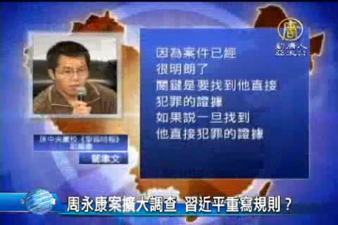 【新唐人亞太台2014年4月22日訊】四月初,英國《金融時報》報導,中共當局將在數週內公布前中共政治局常委周永康的案件。如果當真,周永康將成為打破「刑不上常委」慣例的第一人。而美國《紐約時報》最新的報導說,不論是要消滅周永康的影響力,還是要發出一個準確無誤的信號給整個共產黨官僚,中共領導人習近平,看起來,想重寫規則。