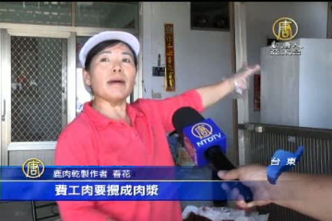 【新唐人亞太台2014年4月25日訊】四面環海的綠島,鹿肉乾是當地名產,之前經歷摻豬肉的造假風波後,許多業者都紛紛表示自清,綠島一位春花阿嬤,堅持手工製做的方式,打出知名度。