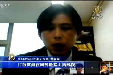 中研院法研所副研究員 黃國昌:「行政官員在國會殿堂上面說謊,有沒有任何法律責任,沒有。之前禽流感的案子,還有後續一些官員在答詢台上面,公然說謊的案子,他們需要負任何的甚麼法律責任嗎?沒有,連政治責任都沒有負。」