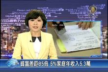 2013-06-10 21:17:32台灣貧富差距持續惡化,根據財政部財政資訊中心最新統計,2011年收入最高的5%家庭,平均年所得高達463.5萬,但最窮的只有4.8萬,差距高達96倍,再創歷史新高,而經濟學者認為,不少有錢人很會避稅,因此台灣的貧富差距,應該更懸殊。