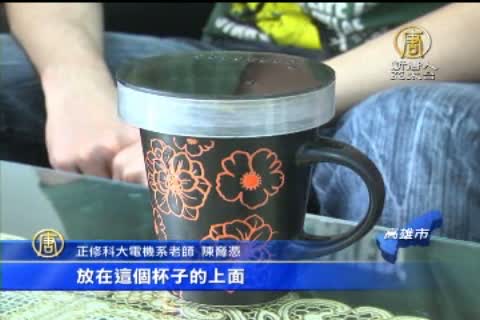 正修科大電機系老師 陳脅憑:「沒有注意的時候或者是離開去上廁所的時候,我們可以把這個安全杯蓋放在這個杯子的上面。」