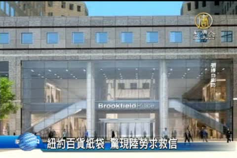 【新唐人亞太台2014年4月30日訊】過去曾經發生美國有民眾在購買的萬聖節飾品中,發現來自中國勞教所的求救信,揭露中共迫害法輪功學員和勞教所的黑幕真相。而紐約知名的薩克斯百貨公司也傳出有消費者在百貨公司的紙袋裡,發現一封來自大陸的求救信函。發現這封信函的人表示,紙袋是她在2012年9月在薩克斯百貨公司拿到的購物紙袋,最近才在底層中發現這封信。信件最上方,寫著3個「求救」大字,還附上照片與電子郵件。信中寫著,他是遠在7千哩外大陸監獄工廠裡的囚犯,每天工時長達13個小時,過著如奴隸般生活,這個紙袋正是他們製作生產的。希望藉由這封信的曝光,讓