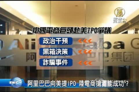 【新唐人亞太台2014年5月7日訊】來關心財經消息,佔有中國八成電商市場的企業─阿里巴巴,今天在美國提交上市文件,首日就遇上科技股板塊大跌,然而,外界預測,阿里巴巴來勢洶洶,募資金額可能超越2012年臉書的160億美元。不過,中國企業透明度和政治干預,也成為阿里巴巴上市案的主要爭議。