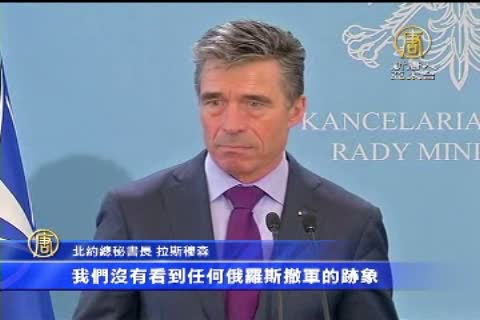 北約秘書長拉斯穆森稱,俄羅斯總統蒲亭聲稱已經從烏克蘭邊境撤軍,但並非事實。