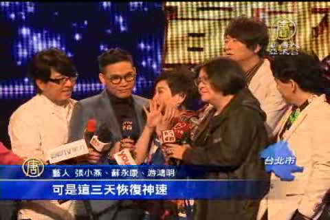 藝人 張小燕 蘇永康 游鴻明:「他已經好多了,他前三天還跟我們說,可以聽不能說,沒有啦沒有啦,開玩笑的,跟我一樣,他前三天還跟製作單位說,他可能不行,可是這三天恢復神速,休養20天,應該可以。」