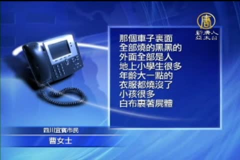 四川宜賓市民 曹女士:「那個車子裏面全部燒的黑黑的,外面全部是人,地上小學生很多,年齡大一點的衣服都燒沒了,小孩很多白布裹著屍體放在那橋兩邊。放了好多,那個車大概7、80人。」