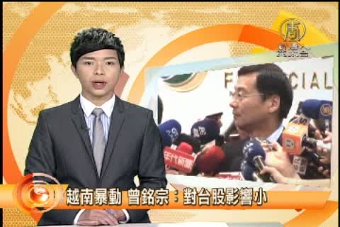 【新唐人亞太台2014年5月16日訊】越南排華事件對台股的衝擊,金管會主委曾銘宗上午出席保發中心董事交接儀式時表示,台灣對越南投資金額約為新台幣1500億元,對台股的權值比例很少,因此對台股的衝擊很微小。曾銘宗也提到,這一兩天,外資還是持續買超,沒有太大異動。至於MSCI調整 權重,影響金額大約是270億元,對股市影響非常小。