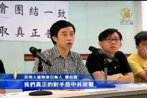 【新唐人亞太台2014年5月19日訊】針對近期泛民主派對普選方案的不同爭議,香港民間人權陣線星期天發表連署聲明,強調大家共同的對手是中共政權,呼籲泛民主派放下紛爭,凝聚力量團結一致,積極參與由「和平占中」運動發起的6月22日「民間電子公投」。