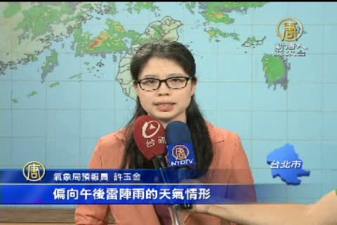 【新唐人亞太台2014年5月22日訊】今天(22日)仍受鋒面影響,天氣較不穩定,都還是有出現陣雨或雷雨的可能性,不過,降雨情況相較於前兩天會比較緩和一些,降雨時間縮短外,沒有下雨時還有可能透露陽光。