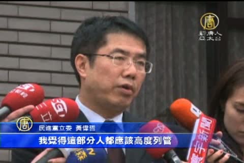 民進黨立委 黃偉哲:「對於參與高度機要,或是敏感科技的研究人員,都應該列管,不管他來自軍方,來自公務體系,或是來自學界,我覺得這部分人都應該高度列管」「他們的個人帳戶,甚至於,他的研究計畫的財務出現問題的時候,第一時間,當下,就應該要趕快做一個防範的動作」