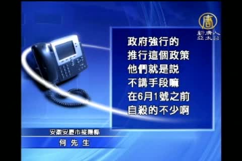 安徽安慶市樅陽縣何先生:「政府強行的推行這個政策,他們就是說不講手段嘛,在6月1號之前自殺的不少啊,安慶這邊山多,傳統的觀念就是說(入土為安)。」