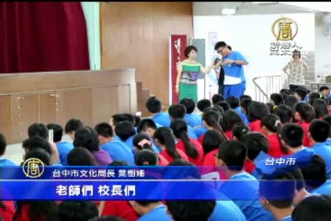 【新唐人亞太台2014年5月26日訊】臺中市文化局舉辦藝術Long Stay計畫,邀請優人神鼓,擔任駐市表演團隊,規劃社區和校園示範演出。20場演出體驗加上一場大型戶外公演,與臺中校園的師生們互動熱烈,主辦單位希望,透過藝術鼓勵孩子們以正確的價值觀,多元發展。