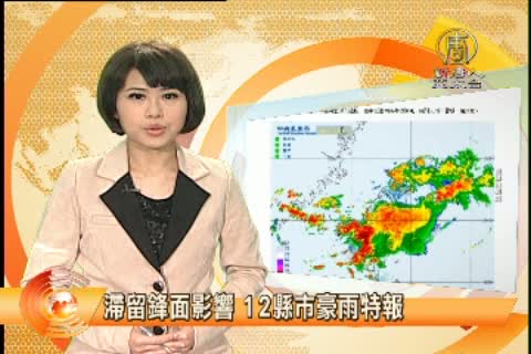 【新唐人亞太台2014年6月3日訊】氣候變遷造成極端降雨的影響越來越明顯。台灣受鋒面影響,今天全台天氣變得不穩定,中部以北及東北部地區有局部大雨或豪雨發生,上午中部地區開始降雨,雲林縣土庫和褒忠鄉更出現時雨量破百,氣象局已經針對全台12個縣市發布豪雨特報。這波鋒面預計會在臺灣附近滯留到週六。氣象局預報中心主任鄭明典也在臉書上提醒,時雨量破百,幾乎確定會有積水來不及退的情況,提醒中彰雲嘉地區的民眾嚴防豪雨災情。