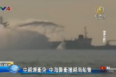 【新唐人亞太台2014年6月3日訊】中共和越南上個月才因為南海海域主權爭端引發衝突,昨天又再度上演。越南國營電視台今天公佈的新畫面,一艘越南船隻在距離中方海洋石油981鑽井平台大約6至8海哩處爆發衝突,過程中,中方船隻向越方船隻噴射水炮,還派出5架戰機,在周圍海域上空飛旋,緊張情勢一觸即發,是否將引發國際間後續效應,有待觀察。