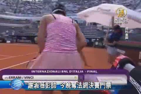 【新唐人亞太台2014年6月6日訊】法網女雙4強賽台北時間今晚七點登場,謝淑薇和彭帥對上西班牙組合蒙奎露薩和娜娃蘿。雙方最近一次交手是在5月初的馬德里網賽女雙4強戰,謝彭二人當時以7比5、3比6、8比10落敗,如果今晚復仇成功,除了晉級決賽,也創下兩人在法網女雙最佳成績。至於男單4強戰也在今晚登場,納達爾和莫瑞進行生涯第20度交手,另一組4強賽則是由塞爾維亞好手喬科維奇迎戰拉脫維亞高比斯。