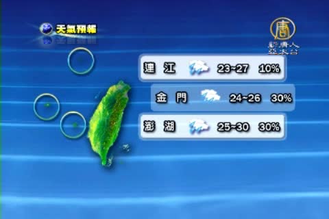 【新唐人亞太台2014年6月8日訊】以下帶您關心6月9號一星期,全台各地以及世界各主要城市的天氣預報。