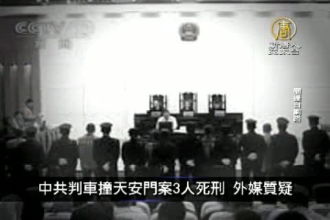 中共禮拜一在新疆烏魯木齊中級法院判處被告玉山江‧吾許爾等三人死刑,指稱這三名嫌犯有血緣關係,犯下3死38傷的天安門衝撞案;不過,BBC駐北京記者指出,一如大多數中國法院審判,烏魯木齊的這次庭審並未開放媒體記者採訪,檢方提出的證據有多充分,無從得知。