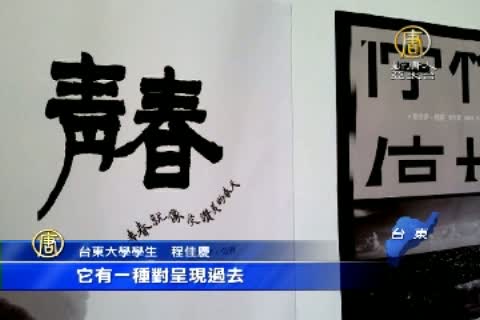 台東大學學生 梁銘容:「學書法的過程,我覺得帶給我很多快樂,然後在我的人生裏面也有很多驚喜,因為也讓我的個性變的比較沉穩.去面對很多事情。
