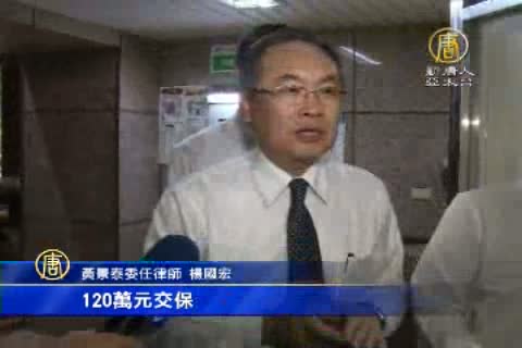 【新唐人亞太台2014年6月19日訊】基隆市議長黃景泰,捲入甲山林建商關說施壓案,因為黃景泰為藍營指定的市長參選人,讓案件格外受台灣媒體議論。檢方表示,搜出500萬元現金,聲請予以羈押,但今天清晨,基隆地院合議庭裁定,黃景泰以120萬元交保,限制出境。