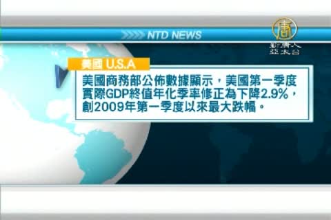 美國商務部公佈數據顯示,美國第一季度實際GDP終值年化季率修正為下降2.9%,創2009年第一季度以來最大跌幅。