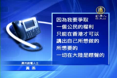 廣州維權人士 黃燕:「因為我要爭取一個公民的權利,只能在香港才可以講出自己所想做的,所想要的,一切在大陸是噤聲的。」