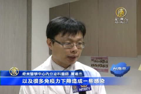 奇美醫學中心內分泌科醫師 嚴逢杰:「飲食西化、多吃多喝、少運動情況下,糖尿病會越來越多,如果糖尿病控制不好,會引起心肌梗塞、腦血管中風或出血,或腎臟功能會壞死,而導致洗腎的地步,以及免疫力下降,造成感染。」