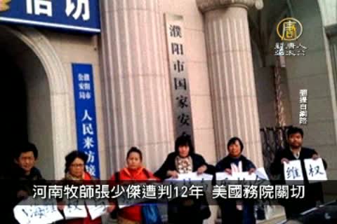 大陸河南省 南樂縣 基督教三自教會牧師張少杰,去年因與地方政府針對教會興建案一事,和地方官員發生衝突,被當局指控在教堂內聚集會友的罪名,判處12年有期徒刑。美國國務院7日就張少傑被捕一事表達嚴重關切。
