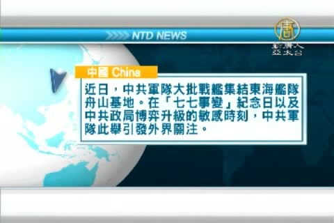 近日,中共軍隊大批戰艦集結東海艦隊舟山基地。在「七七事變」紀念日以及中共政局博弈升級的敏感時刻,中共軍隊此舉引發外界關注。