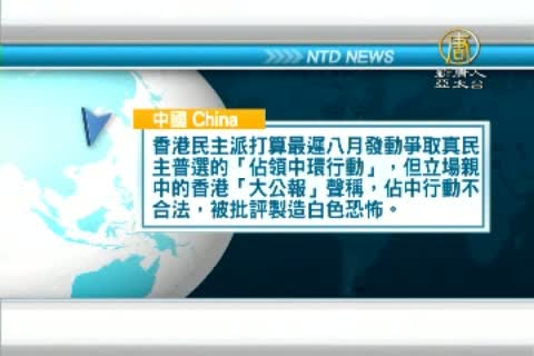 香港民主派打算最遲八月發動爭取真民主普選的「佔領中環行動」,但立場親中的香港「大公報」聲稱,佔中行動不合法,被批評製造白色恐怖。