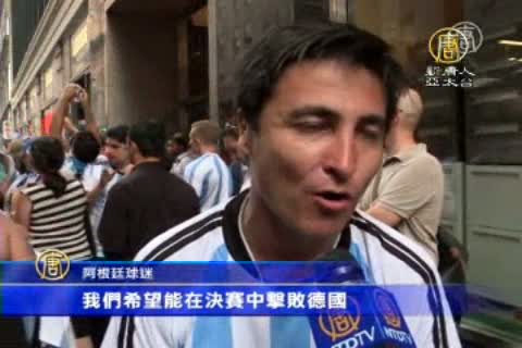 【新唐人亞太台2014年7月11日訊】歡迎回到早安新唐人,阿根廷睽違24年再度擠入冠軍賽,將第三度和德國隊競爭世界盃冠軍,梅西之前曾表示,世界盃冠軍比金靴更重要,究竟梅西能不能跟隨馬拉度納,帶領阿根廷奪冠?全世界的球迷,都在關注。