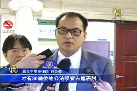 王金平委任律師 許英傑:「對於這個動機是否有不當,是否是要更換國會議長,上訴人那邊是不斷的否認,那這個就可以從客觀的新聞去勾畫出,他內心的想法,也就是這樣子,在去年的9月16號,才有30幾位的公法學者去連署說,按照他這樣的做法,有侵害憲政秩序。」
