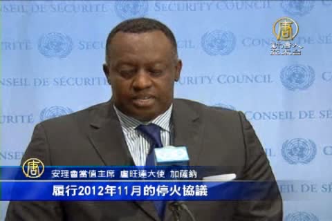 安理會當值主席 盧旺達大使 加薩納:「安理會成員國對當前危機以及如何保護雙方平民表示嚴重關切。安理會成員國呼籲雙方減少衝突,履行2012年11月的停火協議。」